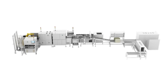 鈑金柔性加工產(chǎn)線將激光切割設備、上下料設備、智能分揀設備、鈑金料庫、RGV、智能行吊等結(jié)合成一條產(chǎn)線,從金屬材料的進料、傳送、堆放和卸料全部實現(xiàn)自動化