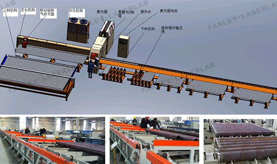 “全自動(dòng)化數(shù)控激光切管生產(chǎn)線”始于2011年3月份?;凇叭恢毓ぁ比娓倪M(jìn)生產(chǎn)工藝,提高生產(chǎn)效率的需求實(shí)際,華工法利萊研制開發(fā)出數(shù)控激光切管系統(tǒng)(JKG9015)3臺(tái),目前3臺(tái)激光切管系統(tǒng)分別布局在三條不同的生產(chǎn)流水線上(每條線總長60米,寬10余米)。該切管線能實(shí)現(xiàn)鋼管材料從上料、輸送、定長、切割、下料、傳輸?shù)搅魉€不同下續(xù)環(huán)節(jié)等整個(gè)過程的完全自動(dòng)化。