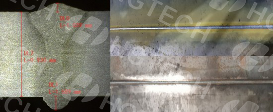 我司承接了某船廠的船板激光電弧復(fù)合焊工藝開發(fā)項(xiàng)目,針對(duì)船用5-10mm中厚板,通過大量工藝試驗(yàn)與檢測(cè)分析,對(duì)各厚度船板進(jìn)行激光復(fù)合焊接工藝研究,穩(wěn)定實(shí)現(xiàn)5-10mm船板拼焊單面焊雙面成形和T形焊縫雙面焊,工件焊前均無需開坡口,焊縫成形飽滿、美觀、均勻一致,無不良缺欠,焊接強(qiáng)度高,滿足船級(jí)社焊接質(zhì)量標(biāo)準(zhǔn),獲取了船板中厚板激光電弧復(fù)合焊工藝規(guī)范和工藝數(shù)據(jù)庫(kù)。