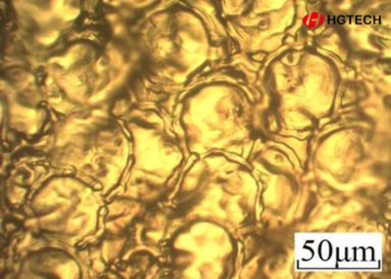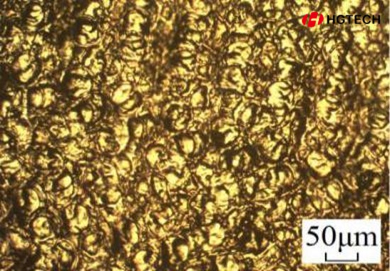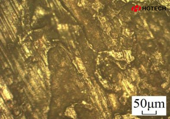 如下圖5,制動盤表面未進行激光清洗前表面被不均勻銹蝕覆蓋,經過最佳激光清洗工藝清洗后,基材表面銹蝕被去除,亮斑相互重疊,在表面形成相互重疊的一個個凹坑,將原本銹蝕的區(qū)域清洗干凈。此外,觀察激光清洗后的表面放大500倍,可以看到表面被圓形的亮斑覆蓋形成圓形的清洗區(qū)域,凹坑中部的銹層基本上被清除干凈,并呈現(xiàn)均勻的亮澤。凹坑邊緣部分呈現(xiàn)環(huán)狀凸起形貌,原因是脈沖激光劇烈的沖擊作用下,凹坑中部的金屬流向邊緣處并且堆積起來形成環(huán)狀,相鄰凹坑的環(huán)形部分呈現(xiàn)均勻搭接堆疊,且?guī)缀醪淮嬖阡P斑,表面完全清洗干凈。3.4 表面金相結構分析
