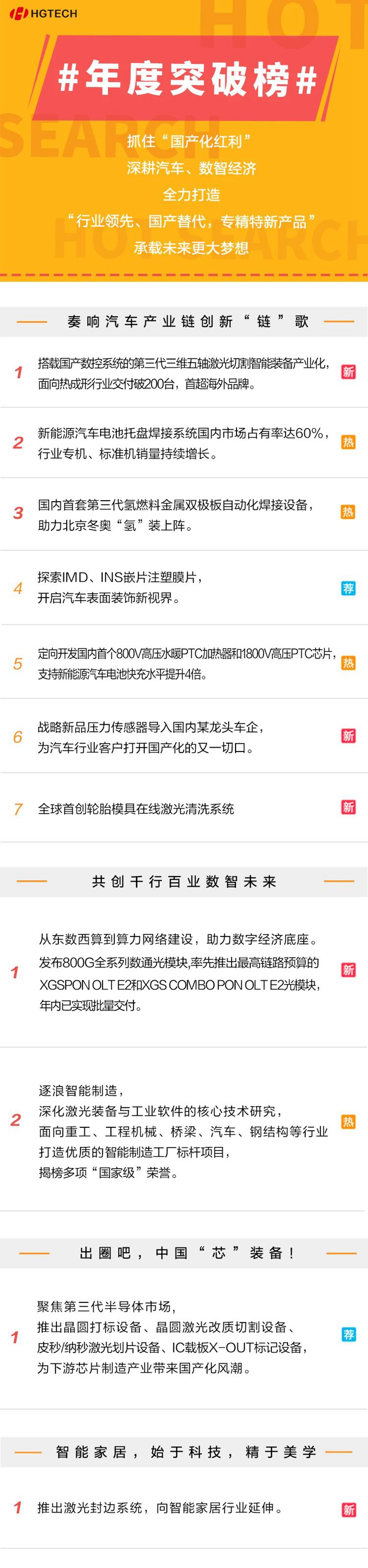 我們深刻把握制造業(yè)發(fā)展趨勢,不斷豐富產(chǎn)品和解決方案,堅持探索自動化、信息化、智能化與制造業(yè)的融合,為各行業(yè)提供包括全功率系列的激光切割系統(tǒng)、激光焊接系統(tǒng)、激光打標系列、激光毛化成套設備、激光熱處理系統(tǒng)、激光打孔機、激光器及各類配套器件、激光加工專用設備及等離子切割設備,及自動化產(chǎn)線、智慧工廠建設整體方案。