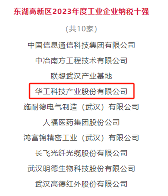 華工科技連續(xù)多年獲評“東湖高新區(qū)2023年度工業(yè)企業(yè)納稅十強”稱號