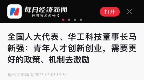 “大家之所以熱議杭州‘六小龍’,因?yàn)檫@是‘現(xiàn)象級案例’,還不是‘常態(tài)化’的狀態(tài)。我們在人才和科技項(xiàng)目的評價、資源的配置、青年人才的培養(yǎng)等方面還有很大的改善空間?!比珖舜蟠怼⑷A工科技董事長馬新強(qiáng)近日接受證券時報記者采訪時透露,在今年的全國兩會上,他的三份建議案都與創(chuàng)新息息相關(guān),尤其關(guān)注青年人才的引進(jìn)和培養(yǎng)。