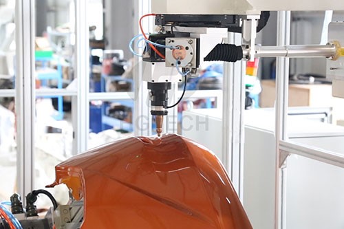 汽車保險(xiǎn)杠激光柔性沖焊一體系統(tǒng)主要用于汽車前后保險(xiǎn)杠(樹脂材料)雷達(dá)孔,牌照框孔,大燈清洗孔等孔的切割及雷達(dá)支架等焊接作業(yè)