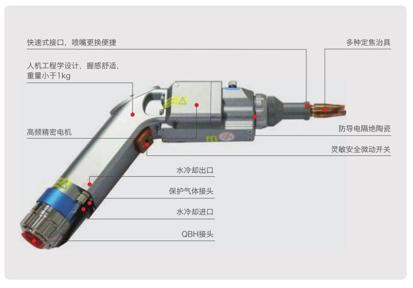 ● 內(nèi)部設(shè)計靈巧,良好的交互控制系統(tǒng),擴(kuò)大了加工部件公差范圍及焊縫寬度,解決了光斑細(xì)小的劣勢,焊縫成形更好;